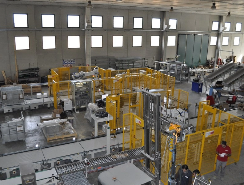 We build complete packaging lines for synthetic rubber bales in blocks. The lines start at the exit of the baler and end with a palletizer that puts the bales in metal boxes. We also build bale wrappers, which are machines that wrap the bales with a film to prevent them from sticking to the adjacent bale during transport. Our lines usually include metal detectors and weight meters. The data is collected and transmitted to the control room that can have a global view of the line and control it remotely.