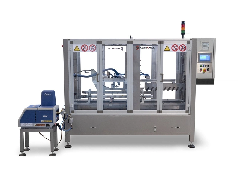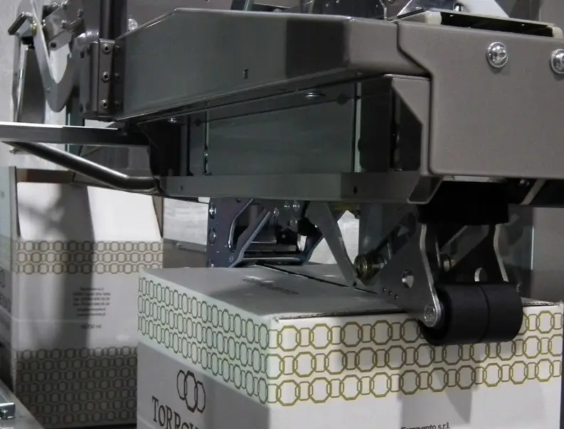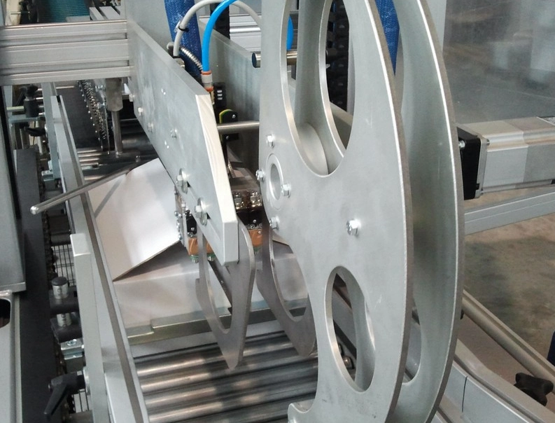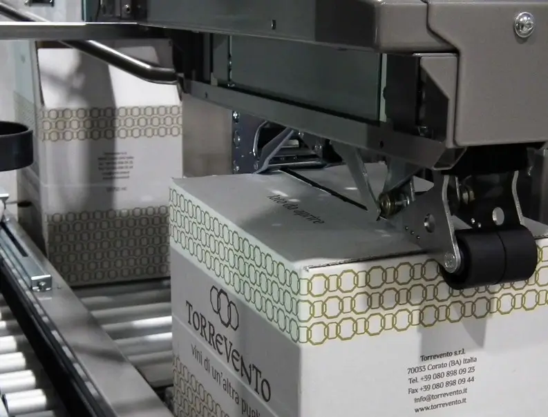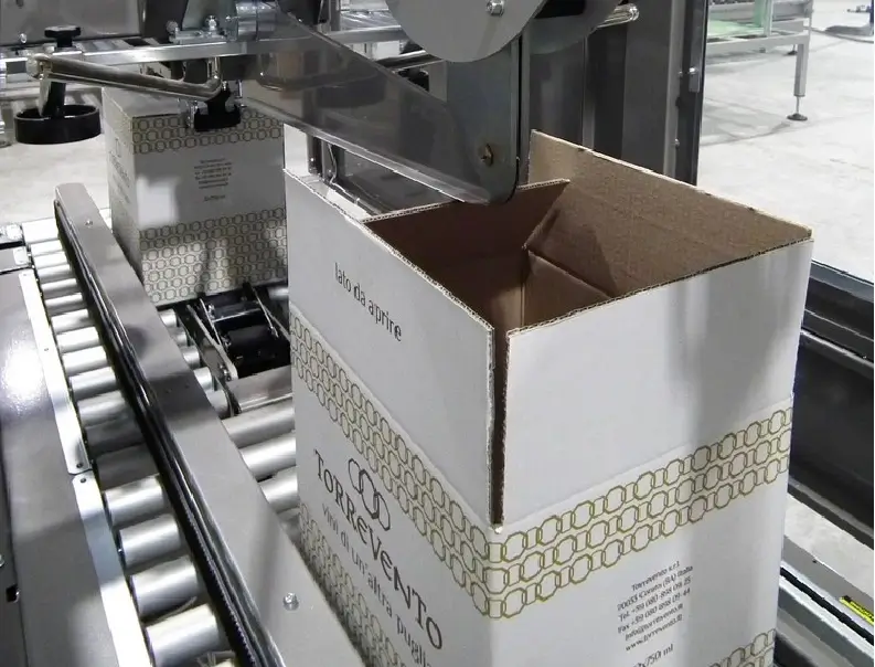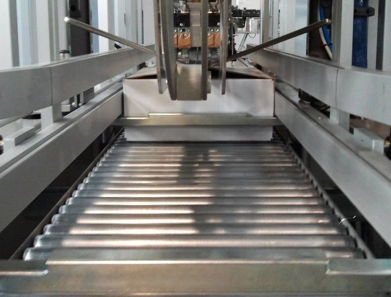 The cartoning machines for american cartons require a case sealer. We build case sealers that can work with glue or with tape. Our case sealers can reach the speed of 3000 cases/minute!