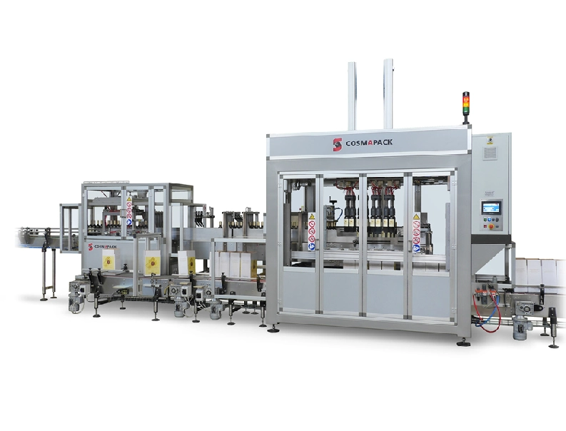 Wrap around cartoning machine up to 1500 boxes/hour. WA is the wrap around line of Cosmapack’s cartoning machines.It’s been studied for medium productions and its output reaches 30 cases/min. A partition inserter module is available for those fragile products that need it. WA can also handle carton trays.