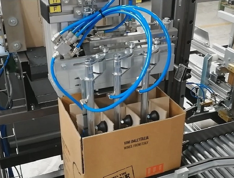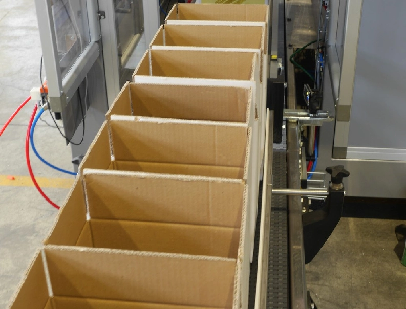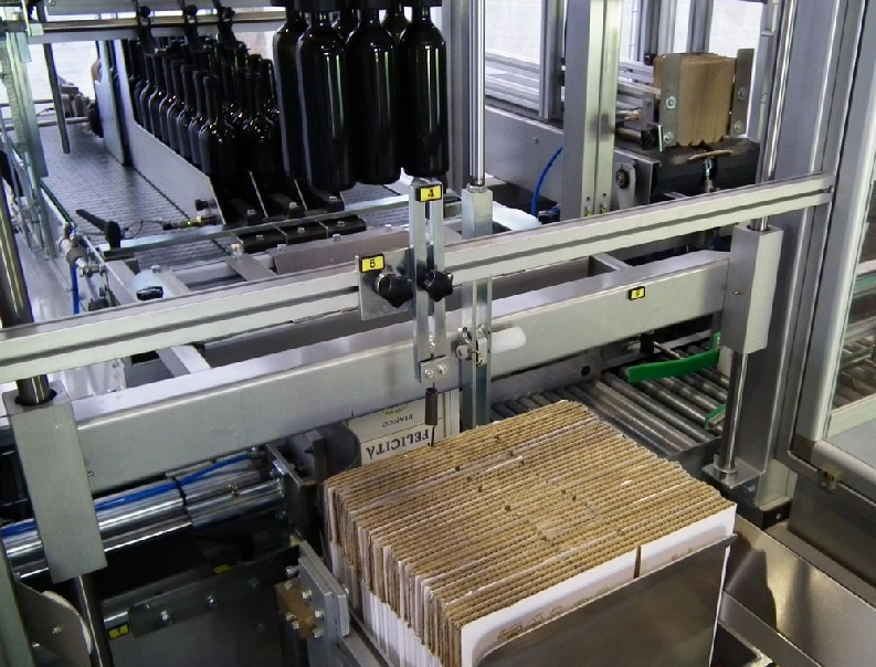 The partition inserters are machines that are positioned after the bottle case packers and allow to insert cardboard partitions between the bottles in the box in order to preserve their integrity.