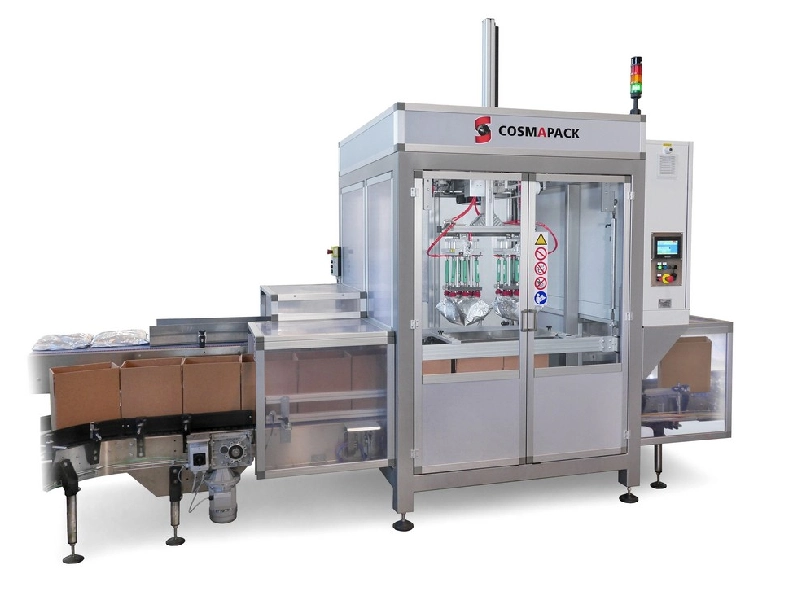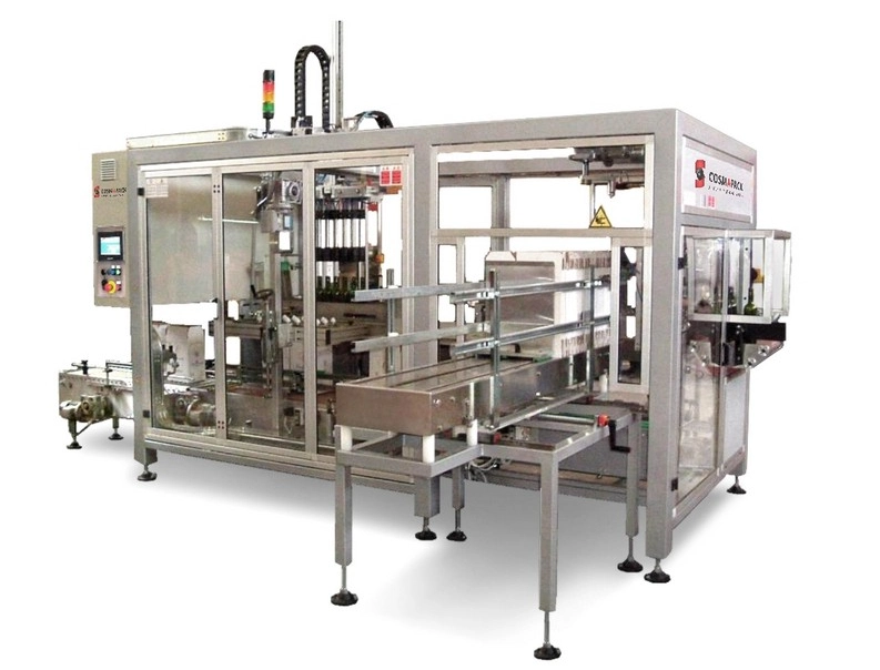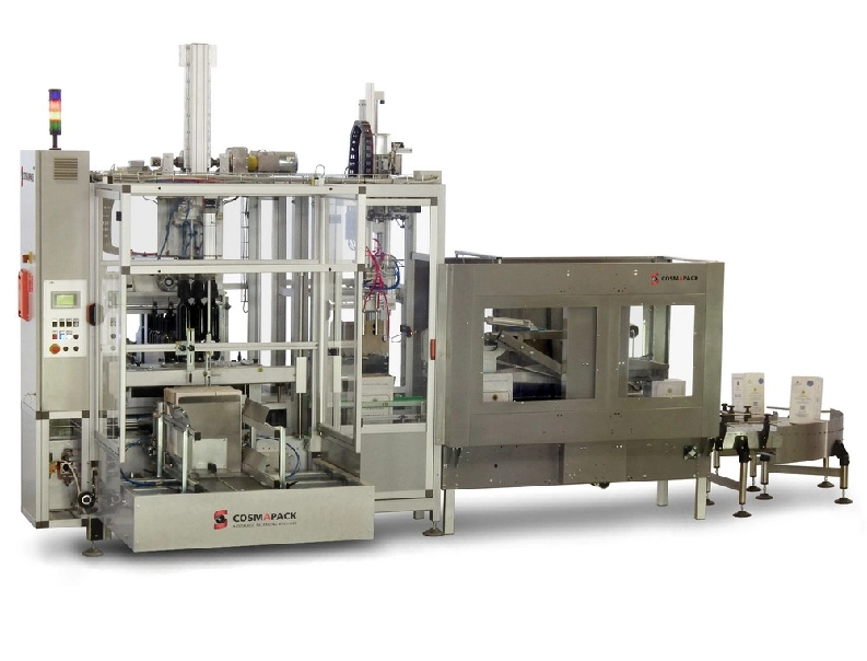 Case packers are historically one of Cosmapacks main business. Our experience in this machine has been growing through the years. If you need a case packer for a small line (max 700 cases/hour) we suggest you to check our monoblock solution that effectively combines a case erector and a case packer. Should you need a faster machine you should then opt for a standalone Quickbox machine or our Wrap Around. Our range includes also a machine for cartoning Bag in box, a fully equipped case packer that receives bags and packs them in a box.