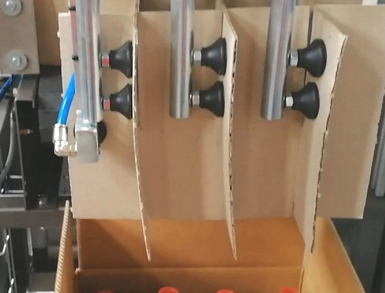 Case packers for American cardboard transfer the product from the gripping surface towards the inside of the American cardboard. To facilitate the insertion of the product into the carton, these machines contain a centering device which, after the empty cartons have entered, is inserted into them. The case packers can be equipped with one or more gripping heads. The gripping heads can be with magnets, pliers, suction cups or with pneumatic bells.