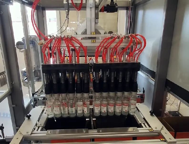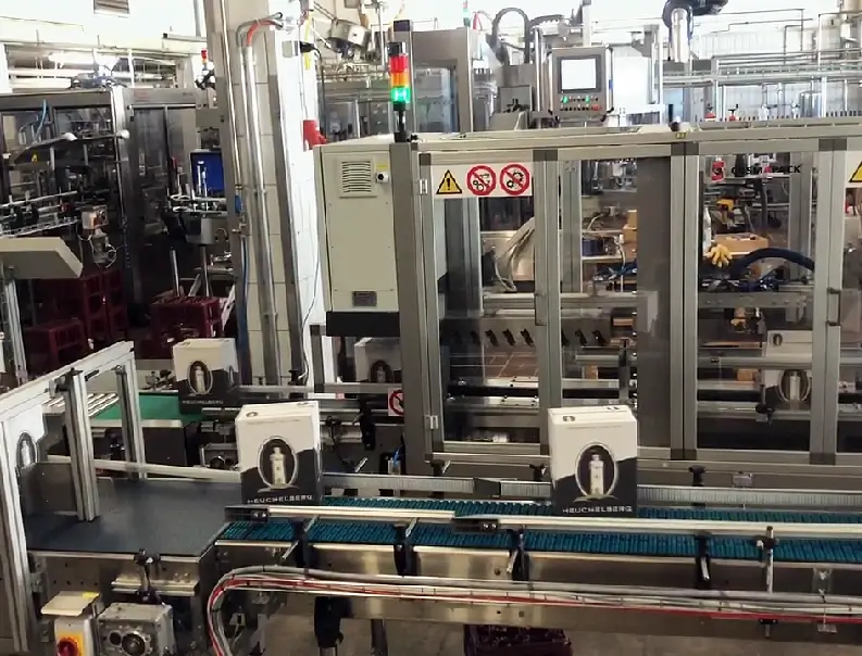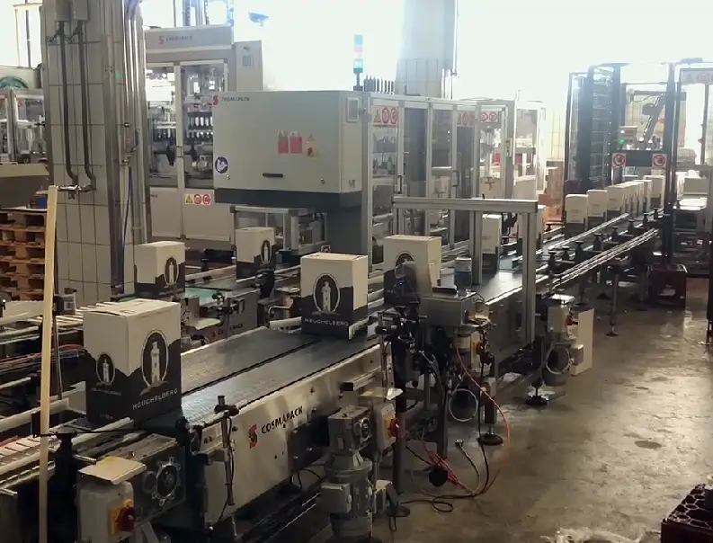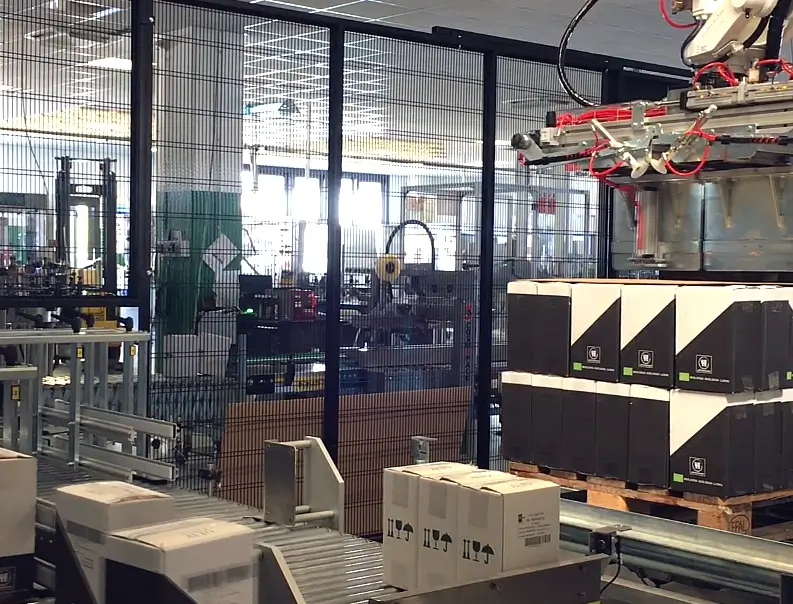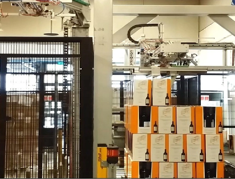 Full Line – Wine sector – Depalletisation, cartoning, closing cartons, palletising and stretch wrapping