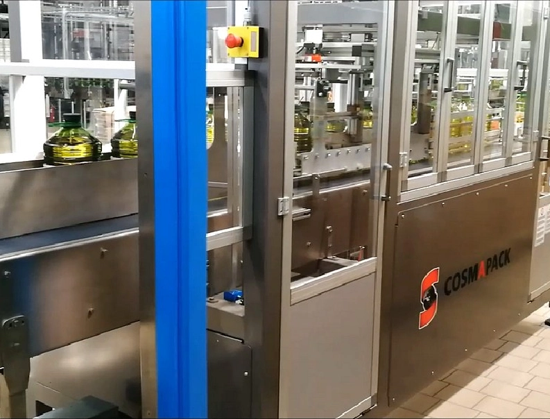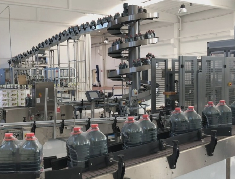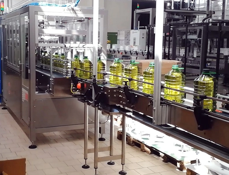 Complete line for the production of vegetable oil packaged in PET containers.
