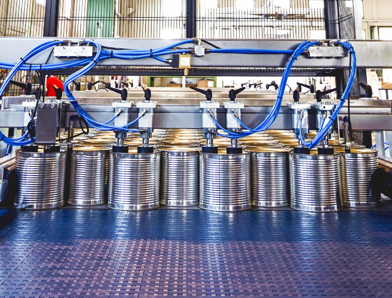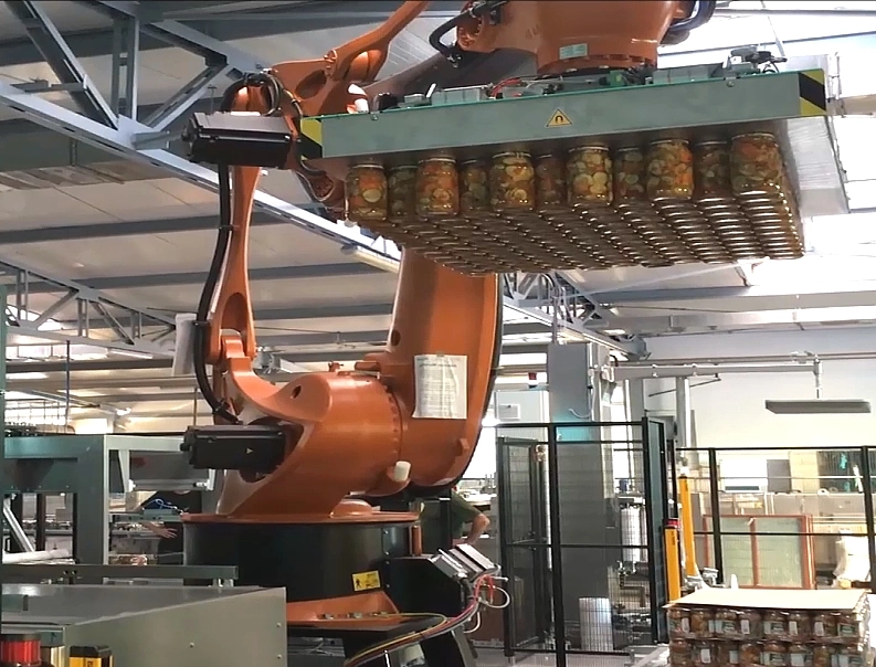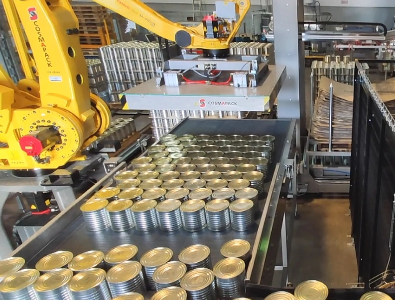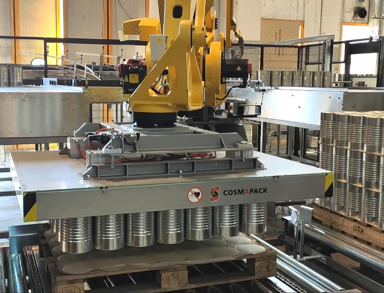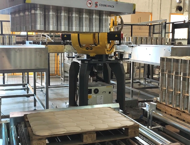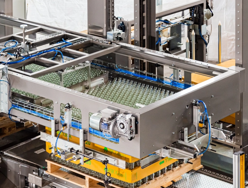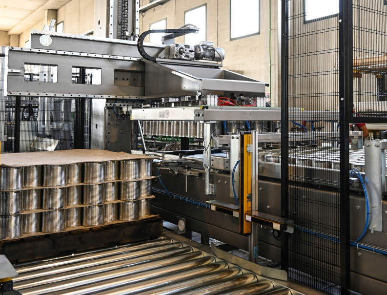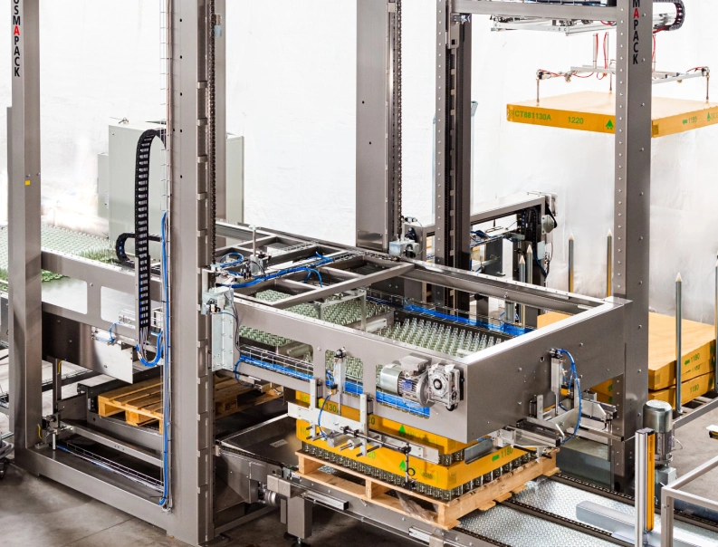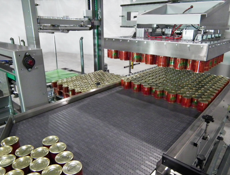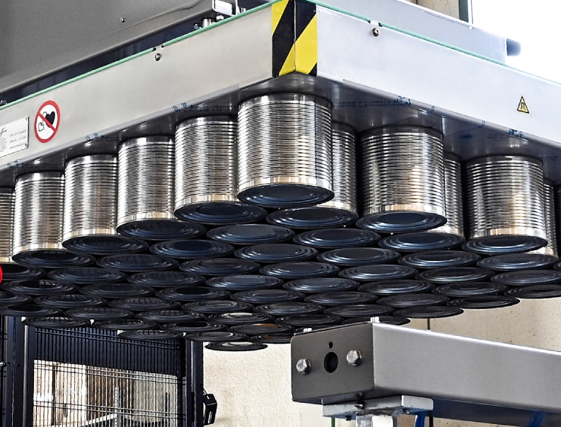 Depalletization of the empty containers is one of the activities where automation can help most. The handling of fragile products at considerable heights makes automatic depalletizers a must in the production lines. Our experience in this type of machines is wide. We build sweep off depalletizers and cartesian depalletizers. For the canned products we build magnetic head can depalletizers too.