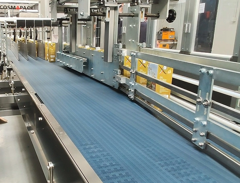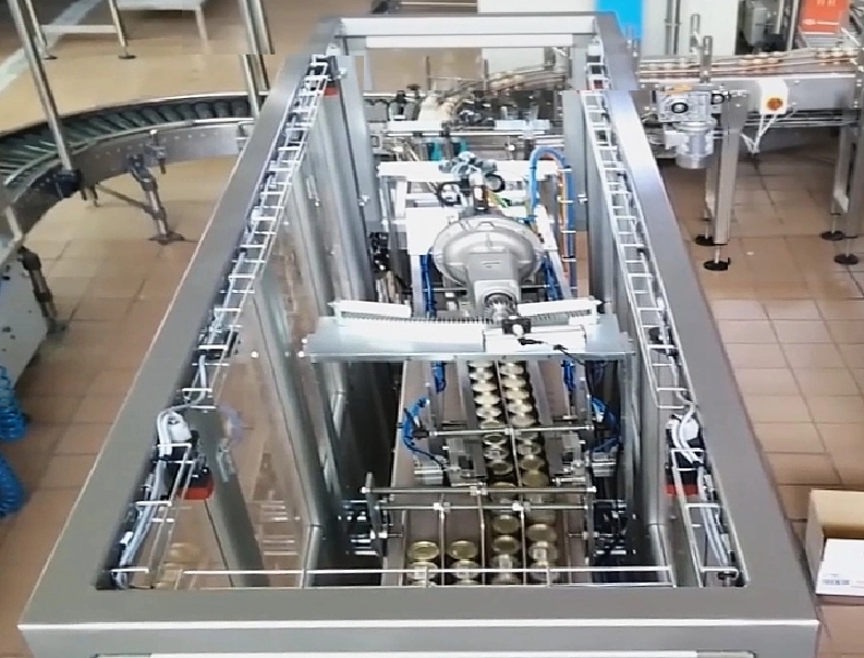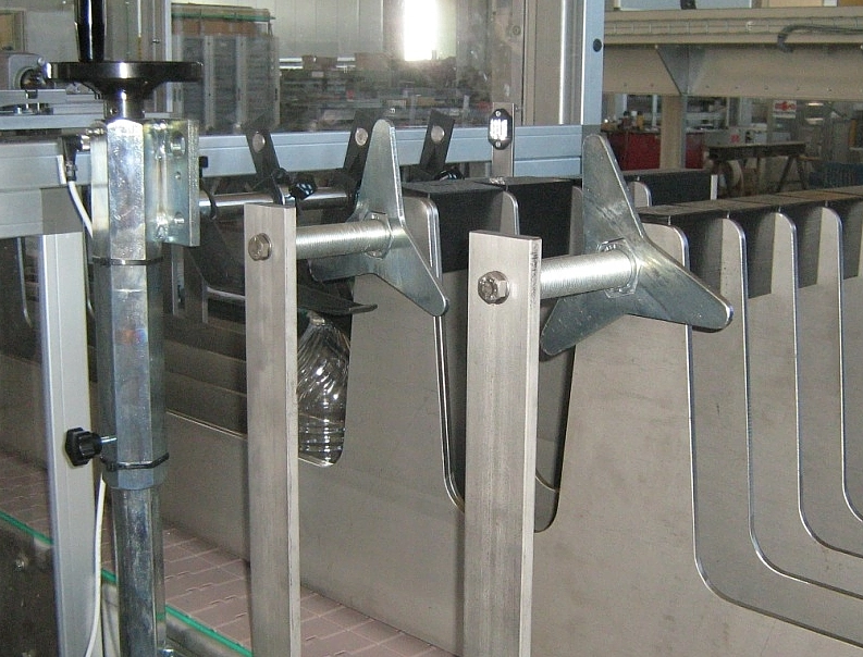 The flow of the product is never stopped, but lined up through a telescopic device that provides a gentle allignement of the product on multiple lines. Besides its mechanical sturdiness, QUICKLINER’s point of strength is in its software: The speed of the product can be simply changed by turning a potentiometer. The machine automatically detects the new speed and adjusts the speed of the motors of the aligning device WITHOUT THE NEED of changing any other setting in the machine. The precision of the aligning system allows to devide properly even bottles that are touching one another. QUICKLINER can work with speeds up to 30’000 bph.